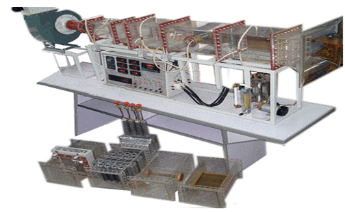 風(fēng)機(jī),自動(dòng)調(diào)節(jié)風(fēng)門,組合式有機(jī)玻璃風(fēng)洞,有機(jī)玻璃實(shí)驗(yàn)管段,有機(jī)玻璃叉排、順排實(shí)驗(yàn)段,旋轉(zhuǎn)圓柱試件,紫銅平板試件,穩(wěn)壓電源配電位器調(diào)節(jié)加熱功率,電流表,電壓表,畢托管及差壓傳感器,PT100熱電阻測(cè)溫,巡檢儀顯示溫度、阻力、流量,不銹鋼臺(tái)架等。